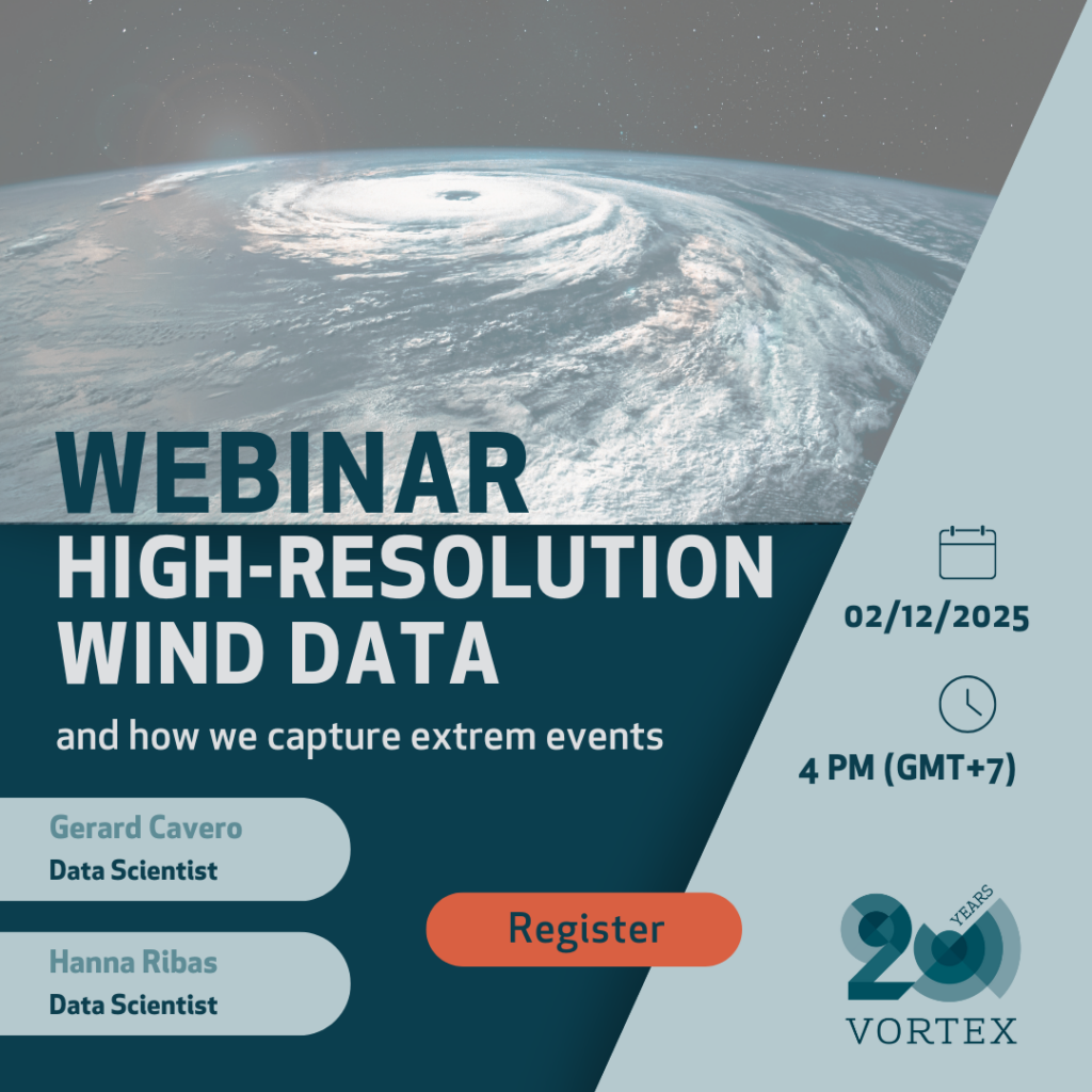 Discover the newest capabilities of Vortex TIMES, a high-resolution time-series dataset that provides detailed wind field information—including wind speed (WS), wind direction (WD), Vref, 3-second gust, turbulence, and a wide range of additional atmospheric variables. This webinar will guide you through recent updates, validation efforts, and real-world applications.